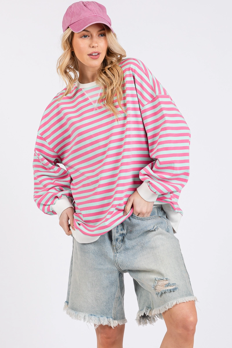 Multi Colour Striped Crew Neck | Pink & blue